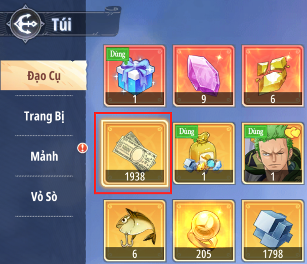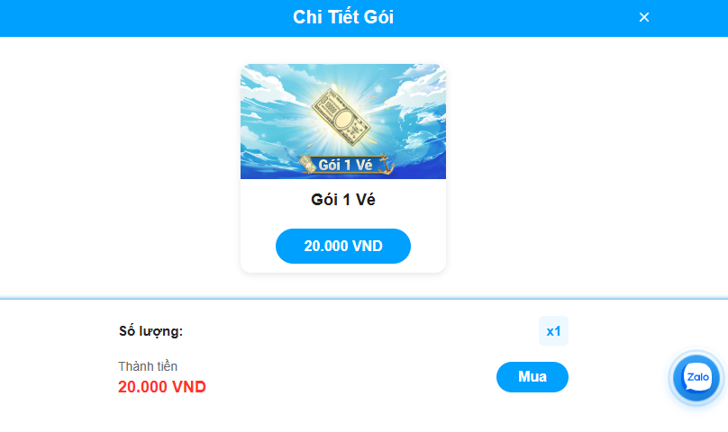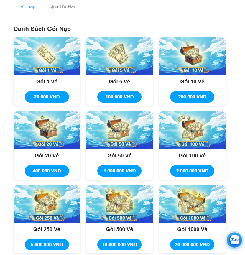 - Thuyền Trưởng dùng Vé Nạp để mua các gói Ingame