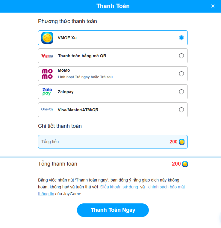 dưới đây Nami hướng dẫn thanh toán bằng VMGE Xu, Thuyền Trưởng có thể Nạp Xu Vào Ví theo trang Hướng Dẫn Nạp Xu Vào Ví VMGE với nhiều ưu đãi khuyến mãi!