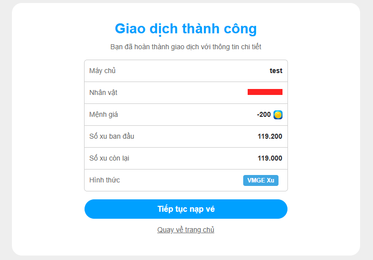 Hình ảnh thanh toán thành công Vé Nạp