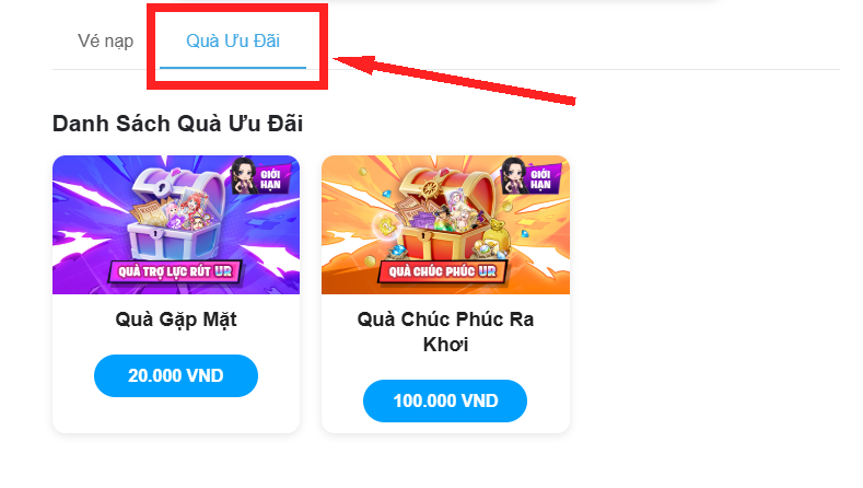 - Thuyền Trưởng mua Gói Quà Ưu Đãi tại link: https://nap.vmgeplay.vn/game/18?tab=gift-codes