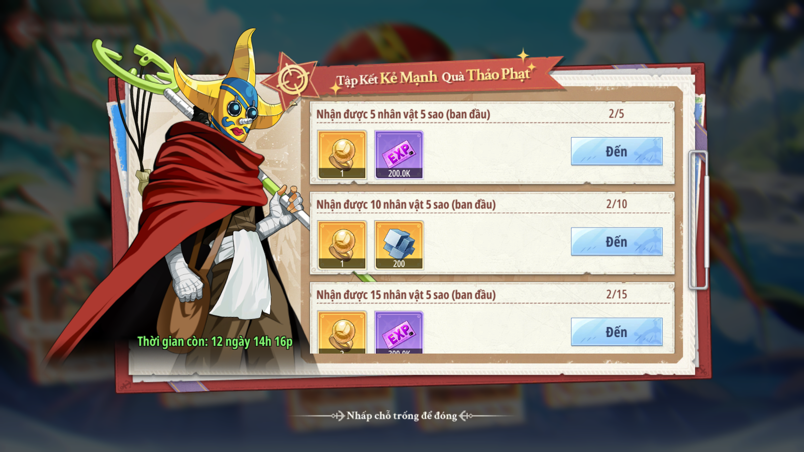 - Các Thuyền Trưởng tiến hành tăng cấp nhân vật theo các mốc nhiệm vụ để nhận phần thưởng.