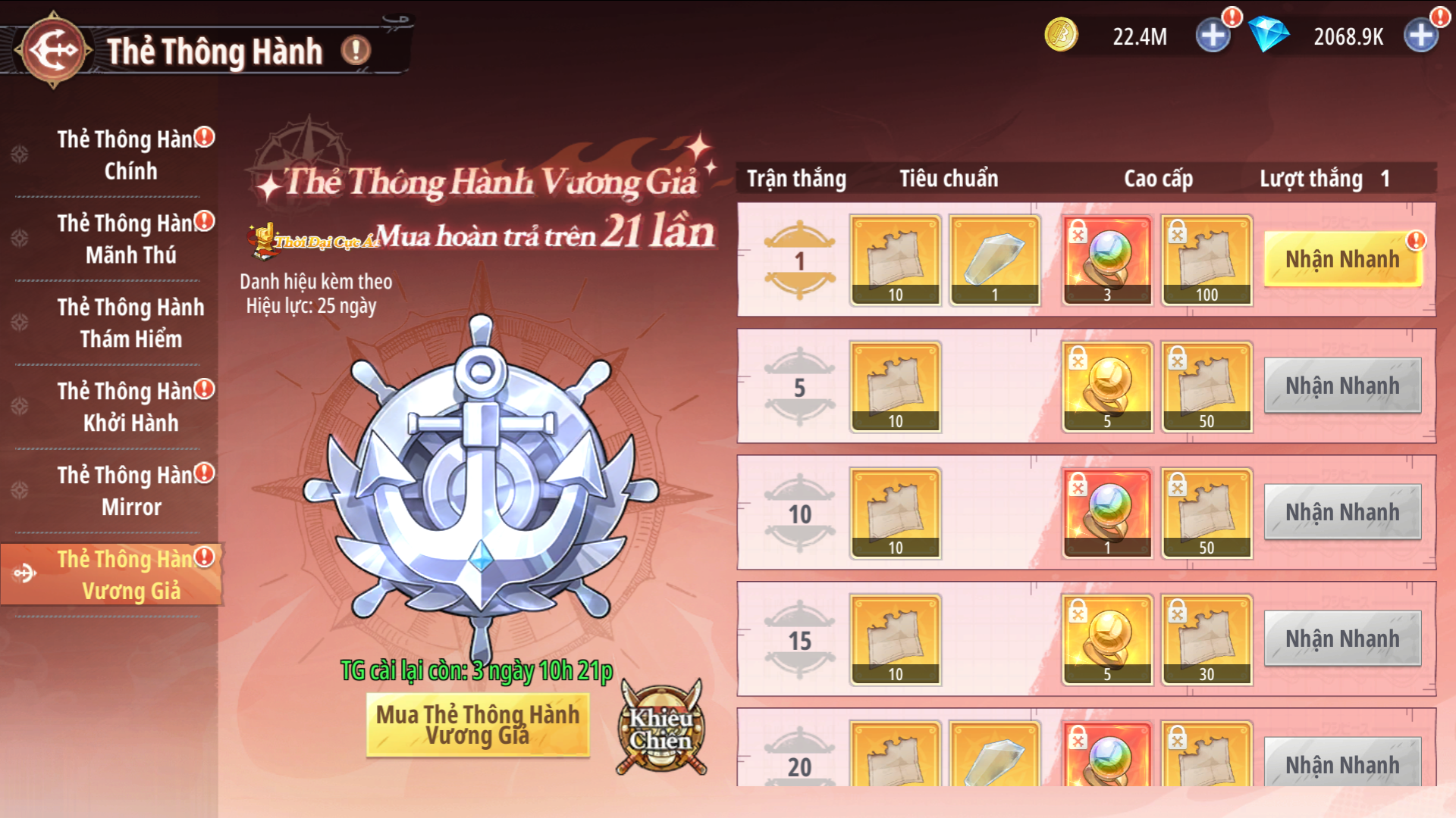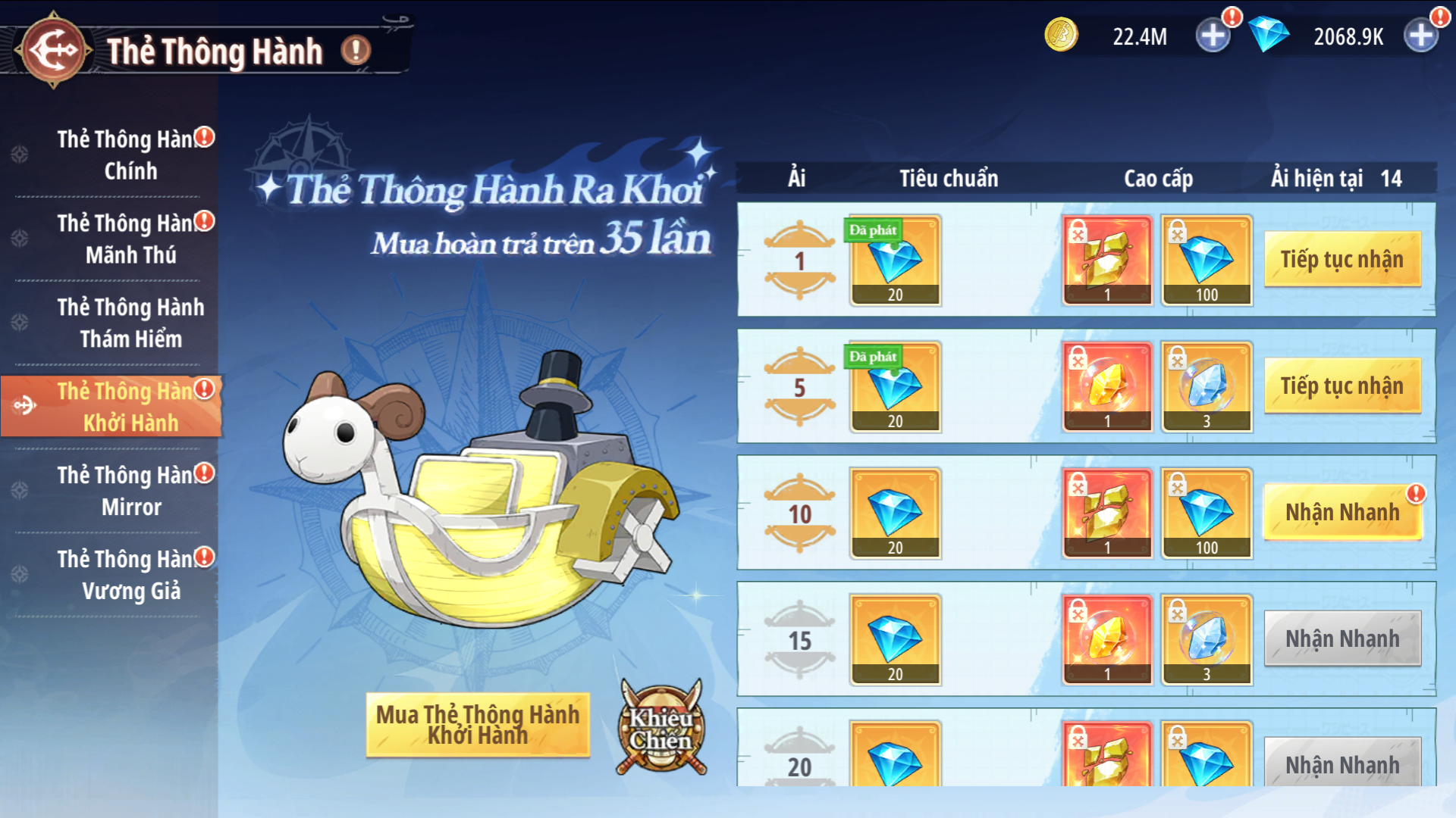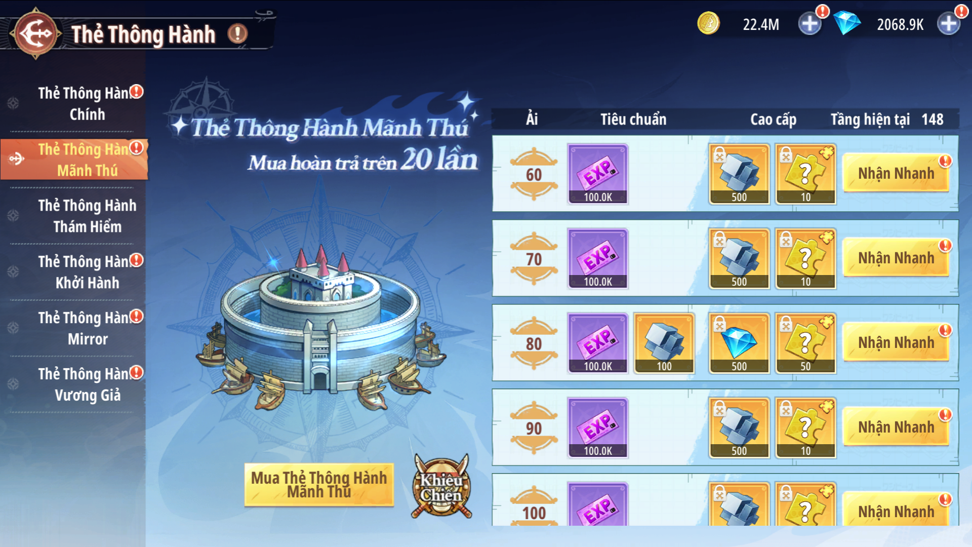Ngoài các gói ưu đãi, các Thẻ Thông Hành luôn là bí kíp đầu tư dài hạn đối với tất cả Thuyền Trưởng!